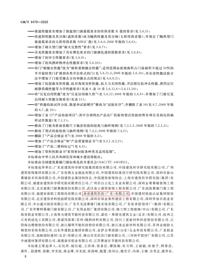 一流企业做标准。作为参编单位的希洛建筑科技(广东)有限公司,对此次新国标的编制提出众多建设性意见并被采纳,为铝合金门窗行业的健康发展贡献了自身力量。新国标的正式发布标志着中国建筑幕墙门窗标准又树立了一个新的里程碑。